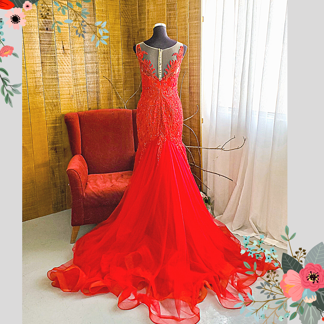 910LLW04 Winona Red Spag strap deep V baroque trumpet a Evening dress rental malaysia