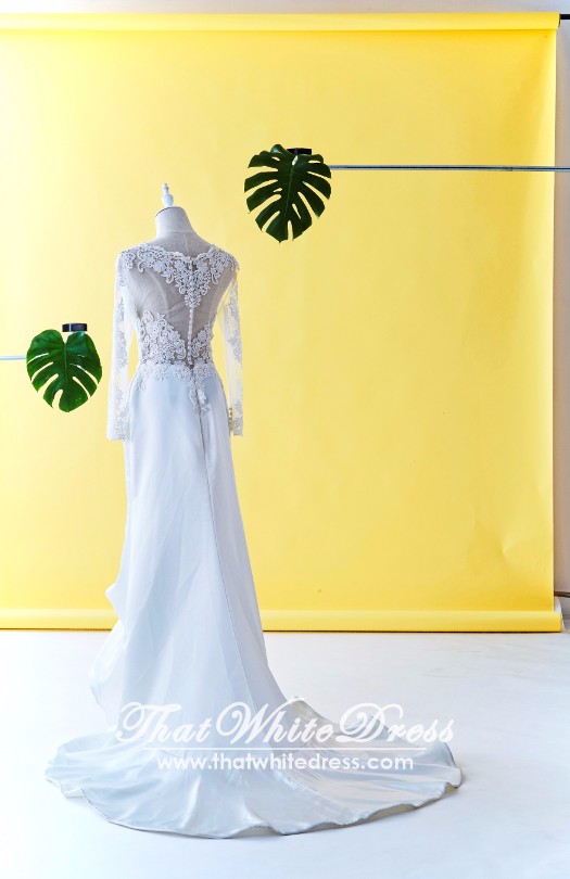 610CCW01 Long Sleeves Illusion Satin button back Malaysia Baju Pengantin Baju Nikah Kahwin