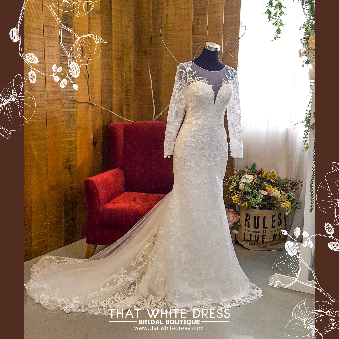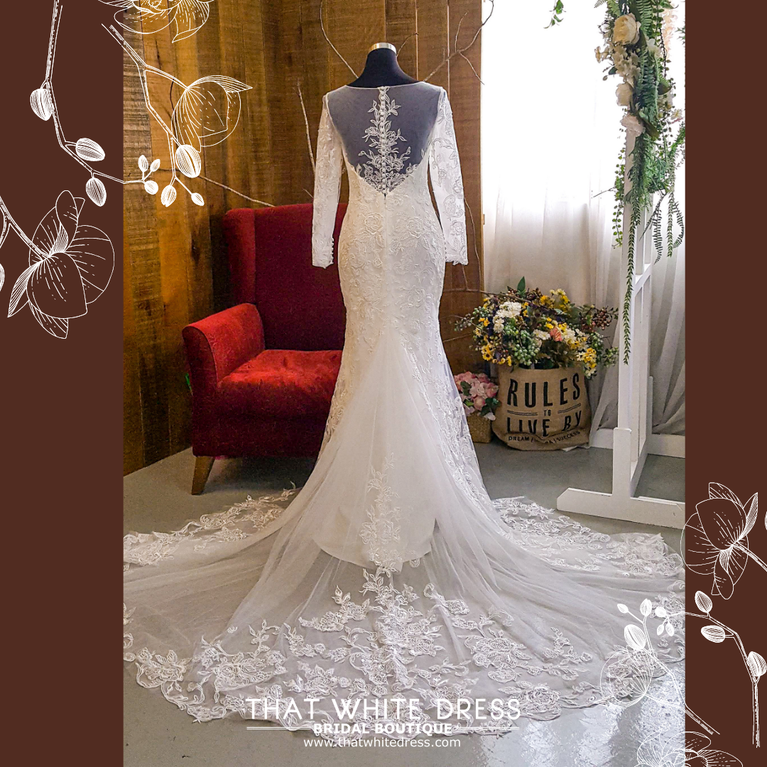 211BY10W02 Annabelle Long Sleeves Trumpet Floral lace mermaid button back c Baju Majlis Kahwin Nikah Sanding Malaysia tempah sewa