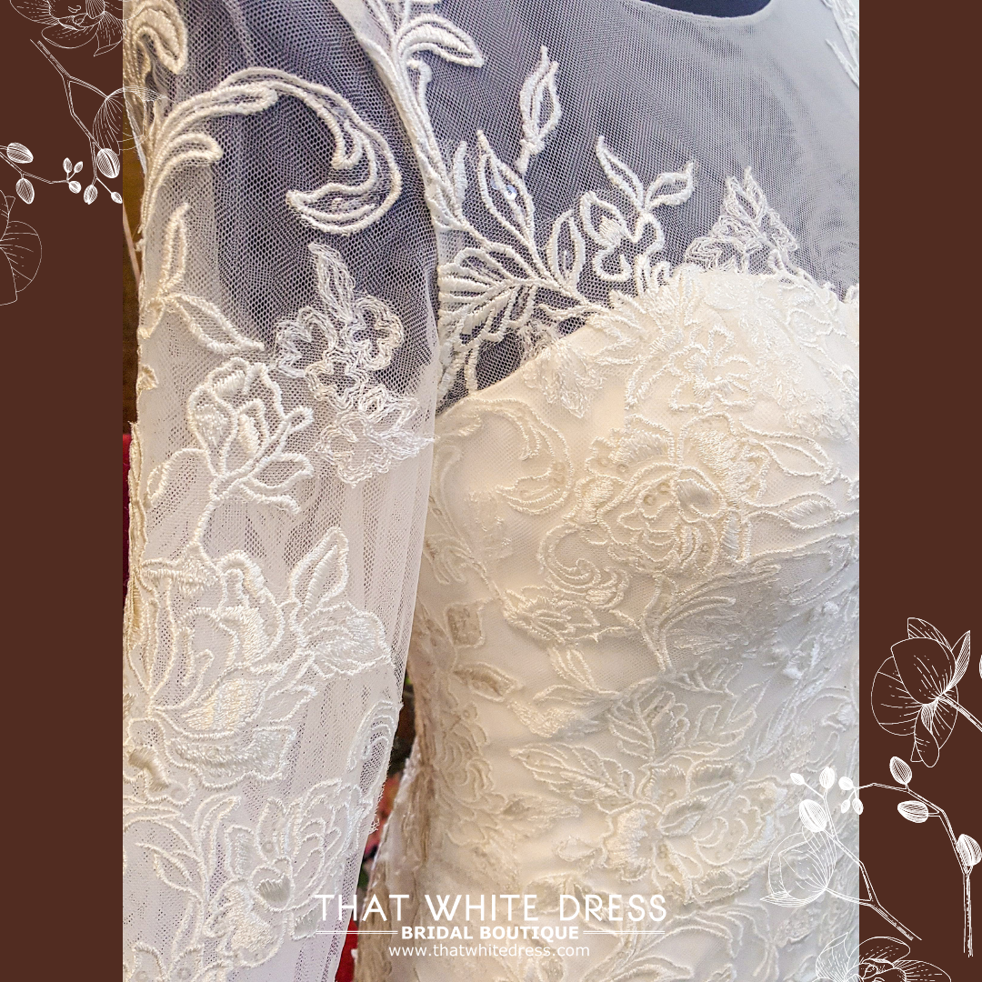 Gorgeous Long sleeves wedding dress in beautiful French embroidered Lace