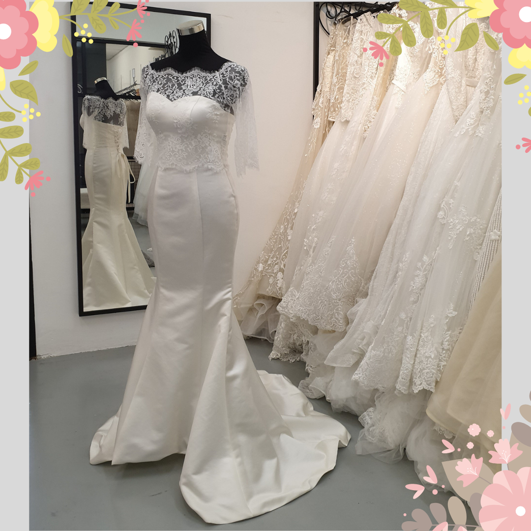 605LL05 LL Sweet Heart Duchesse Satin Trumpet LS off 1 Long Sleeves Wedding Dress Rental Kuala Lumpur, Beach Wedding Malaysia,