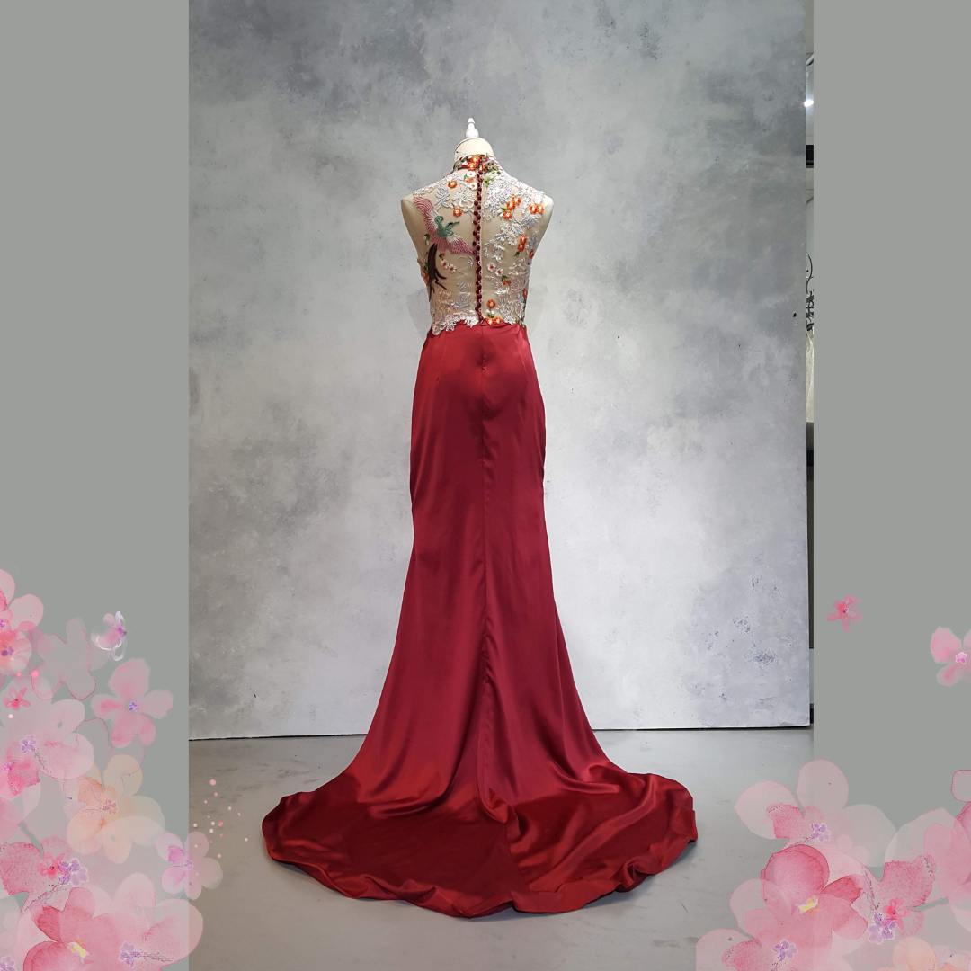 219EL01E01 Dey Cheongsam Red Satin Skirt Halter