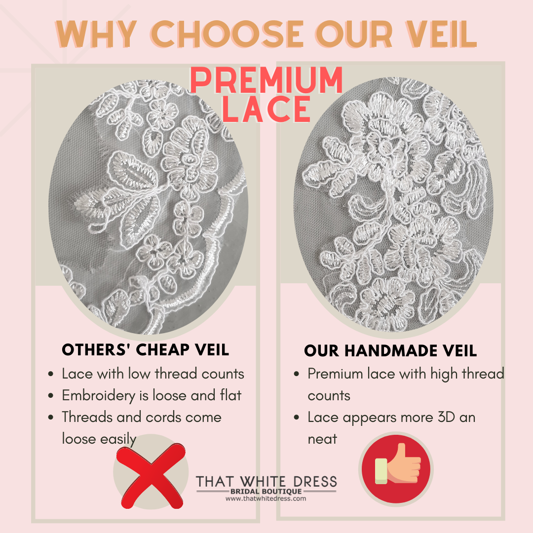♥ The lace and beadings used on the veil are premium quality lace.