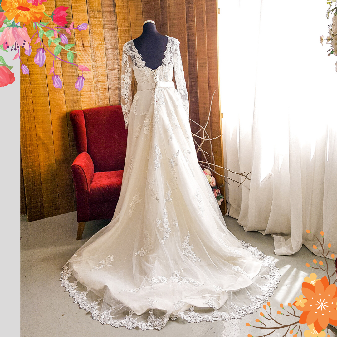 Can be teamed with a detachable long sleeves inner garment to convert it into a conservative covered back dress suitable for church wedding, muslimah wedding/majlis perkahwinan, or nikah.
