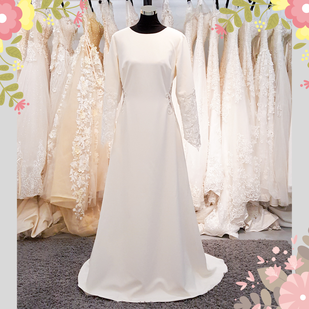 Long Sleeves designs suitable for Muslimah Bride/ Hijab Bride are available.