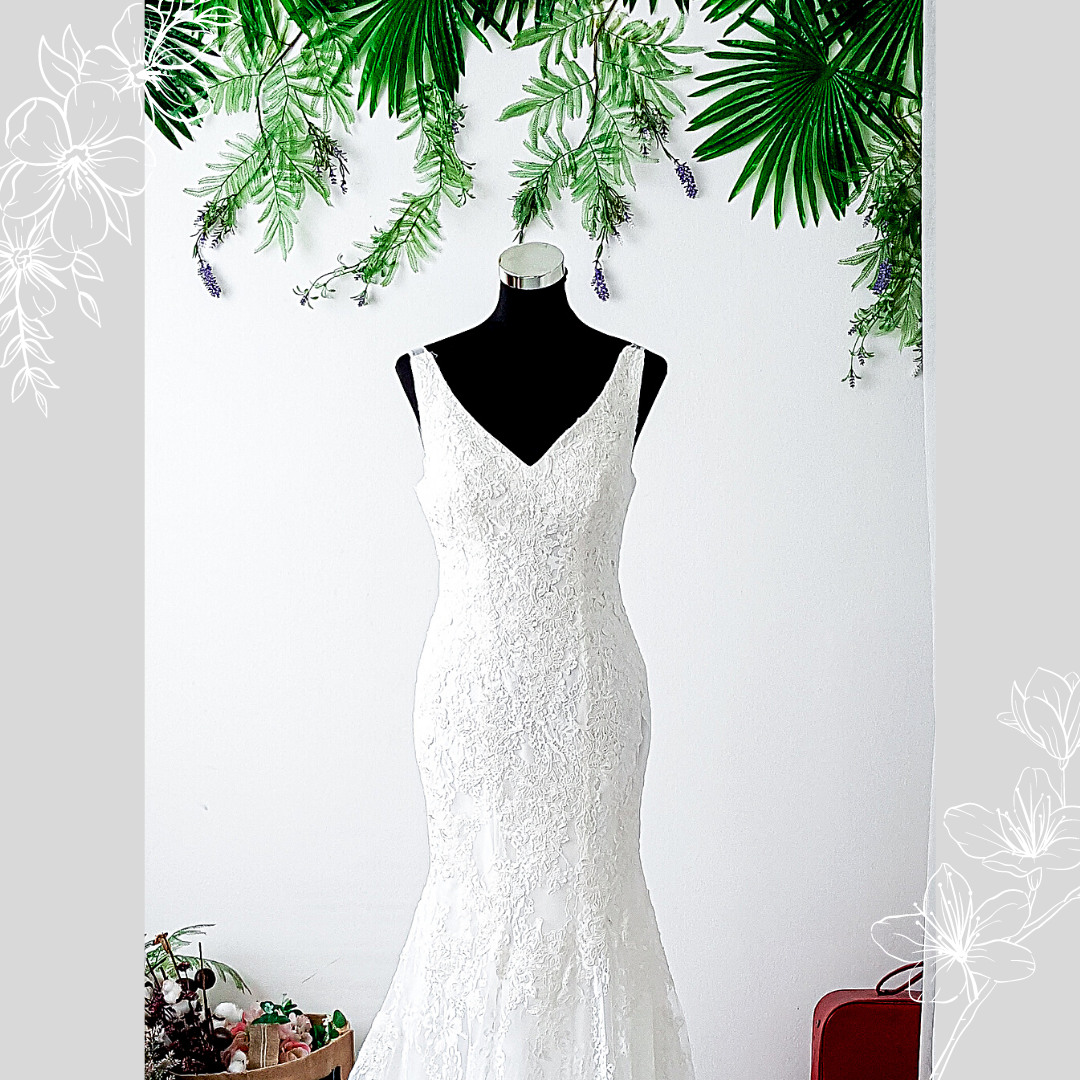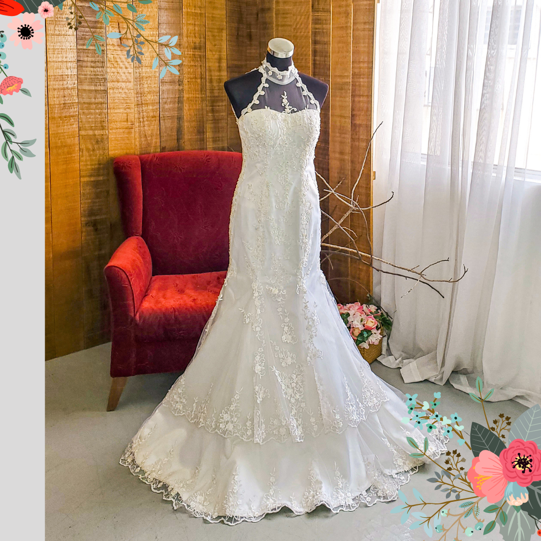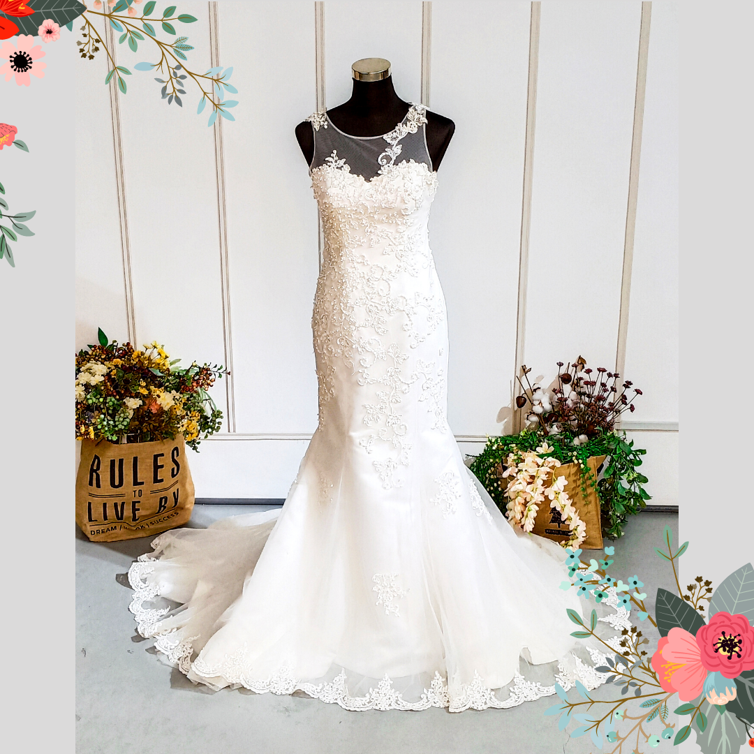 305W001 MR Halter Lace Aline a Trumpet Wedding Dress rental Malaysia