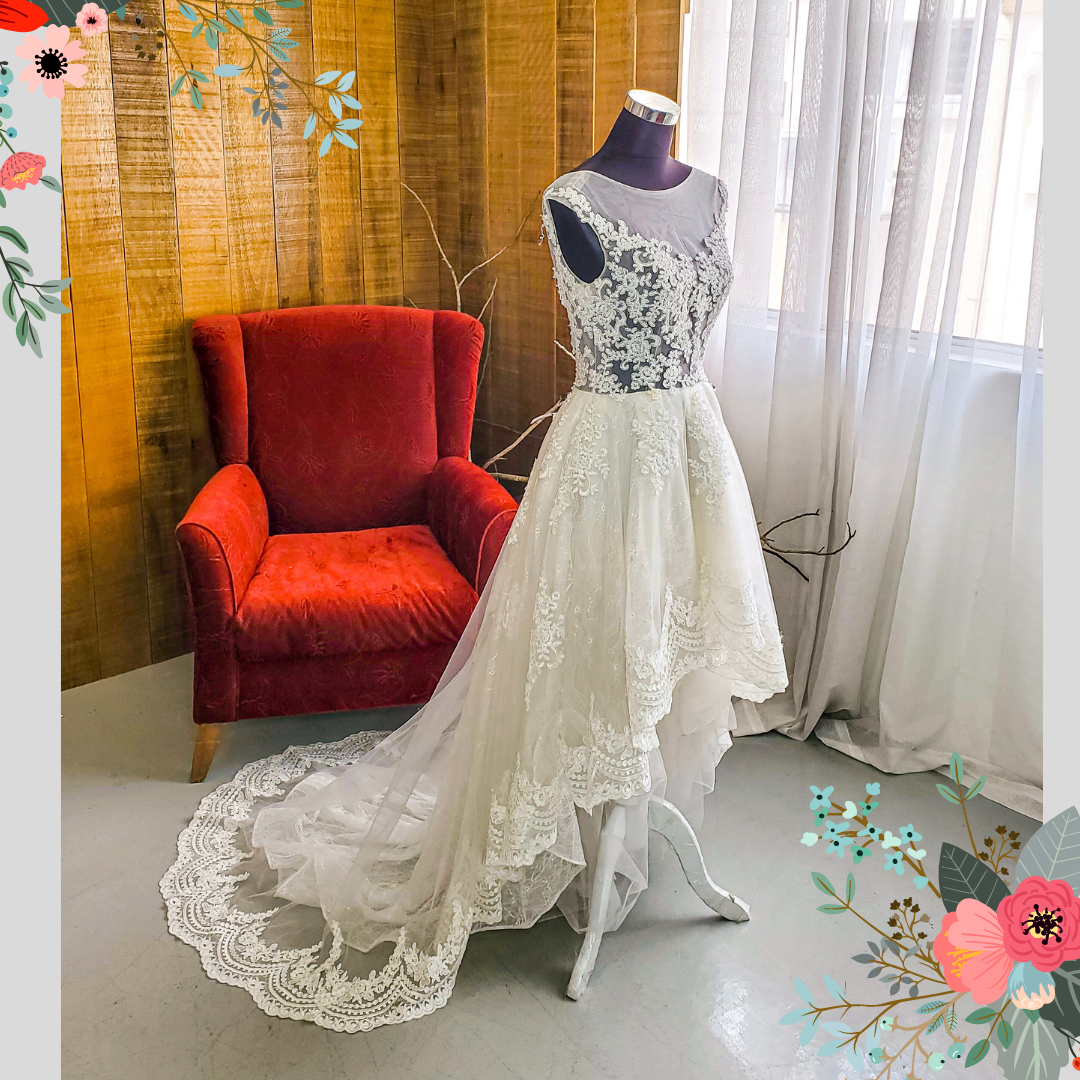 605LL01 LL Illusion Lace Neckline Alyssa Short Dress Long Train a