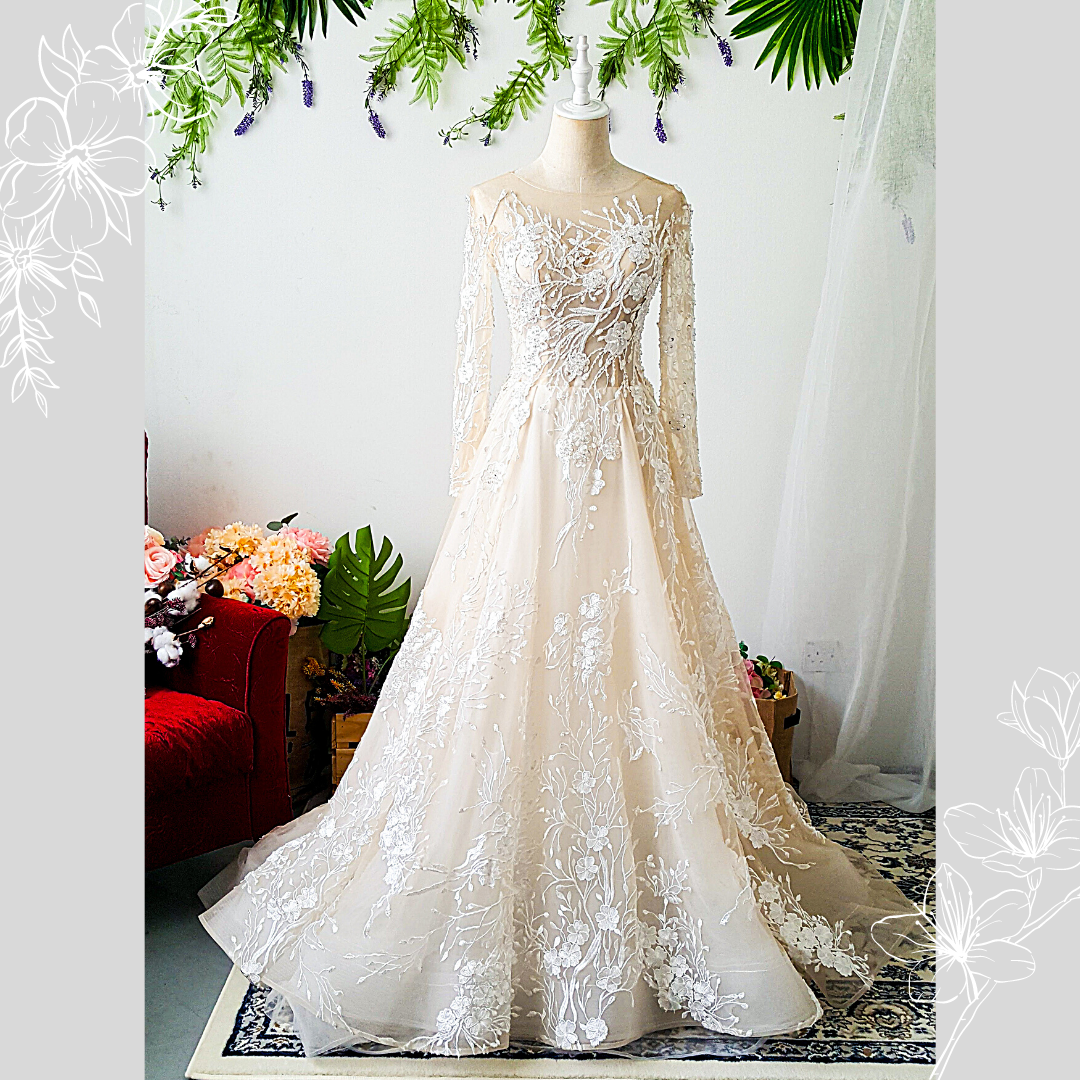 77LLW03 LL Hannah Long Sleeves Illusion Neck off shoulder Princess Champagne a