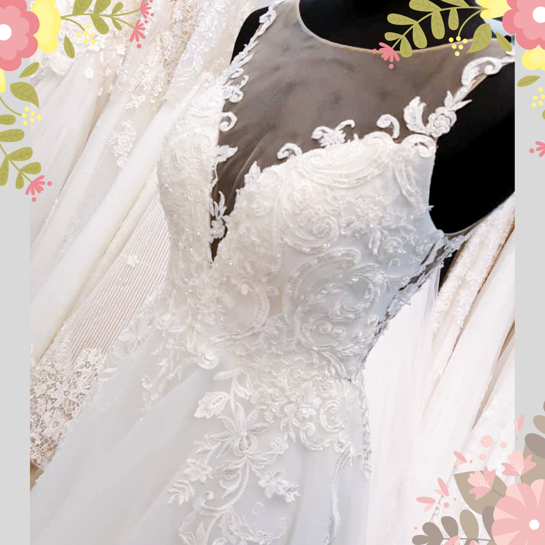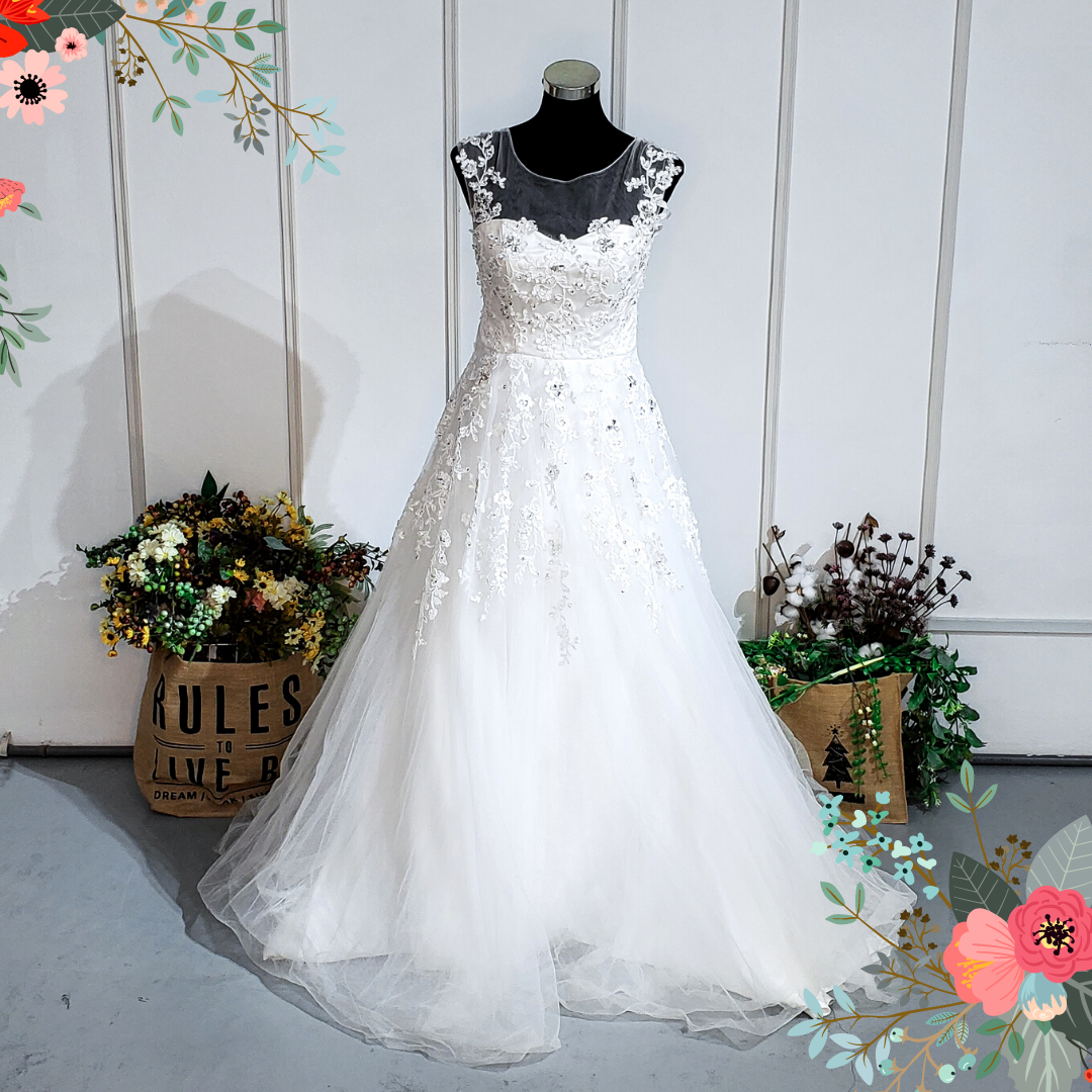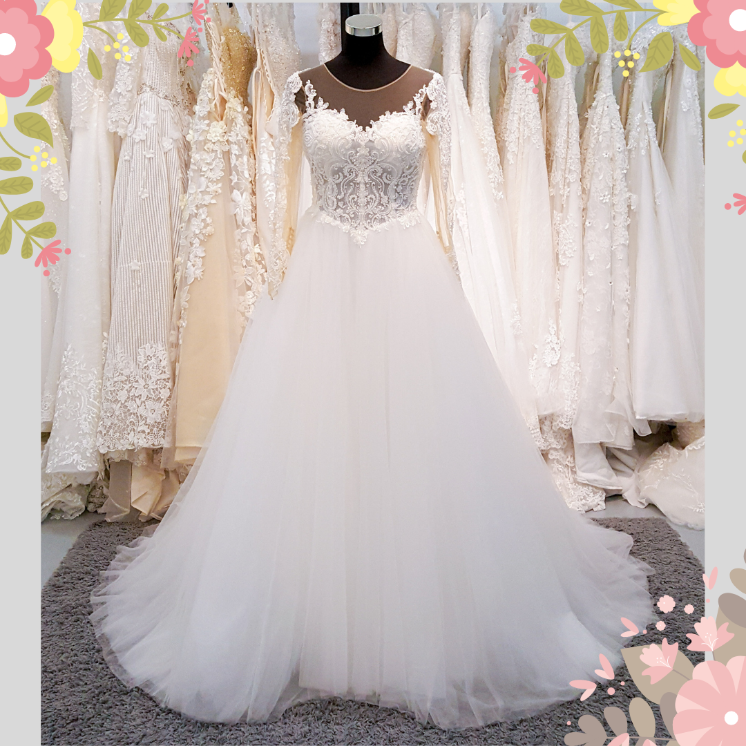 601W05 AD Illusion Neck Princess wedding dress lace and beads