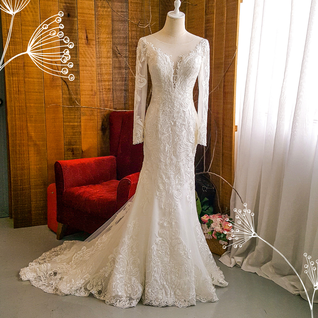 608LL07 LL Illusion neckline Zip back Trumpet Long Sleeves