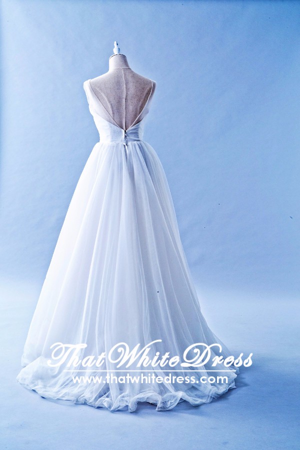 508W01 TY Strap V neck Low Back zip organza Wedding Dress Designer Malaysia