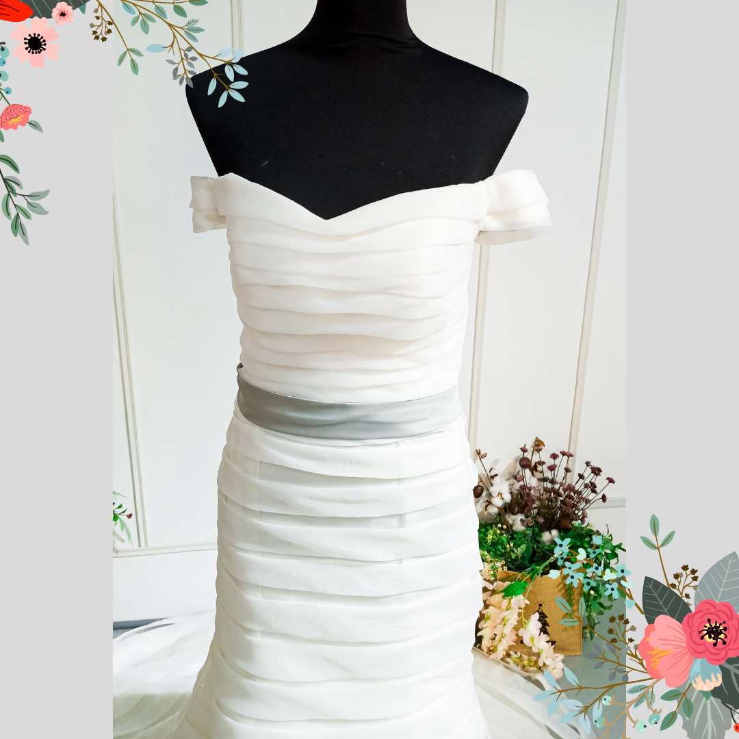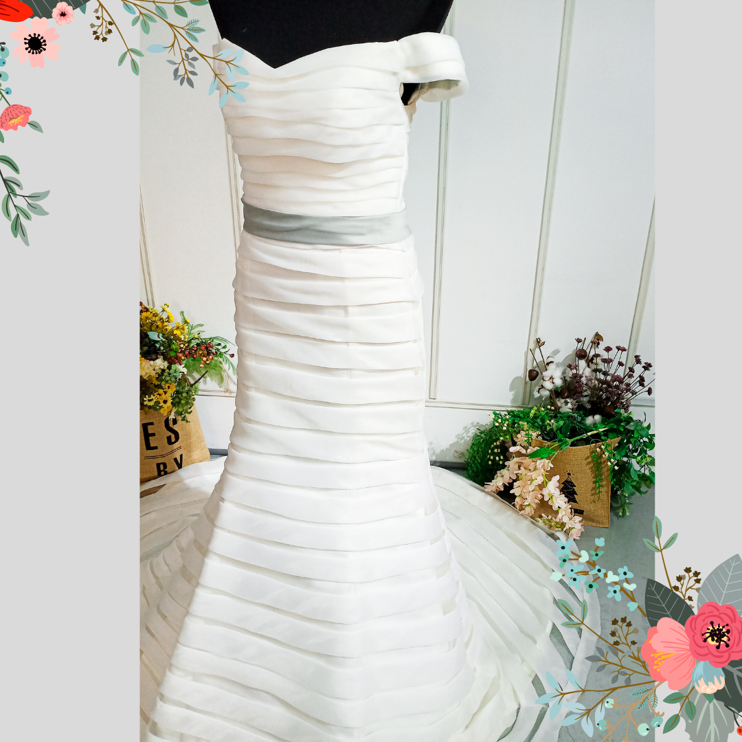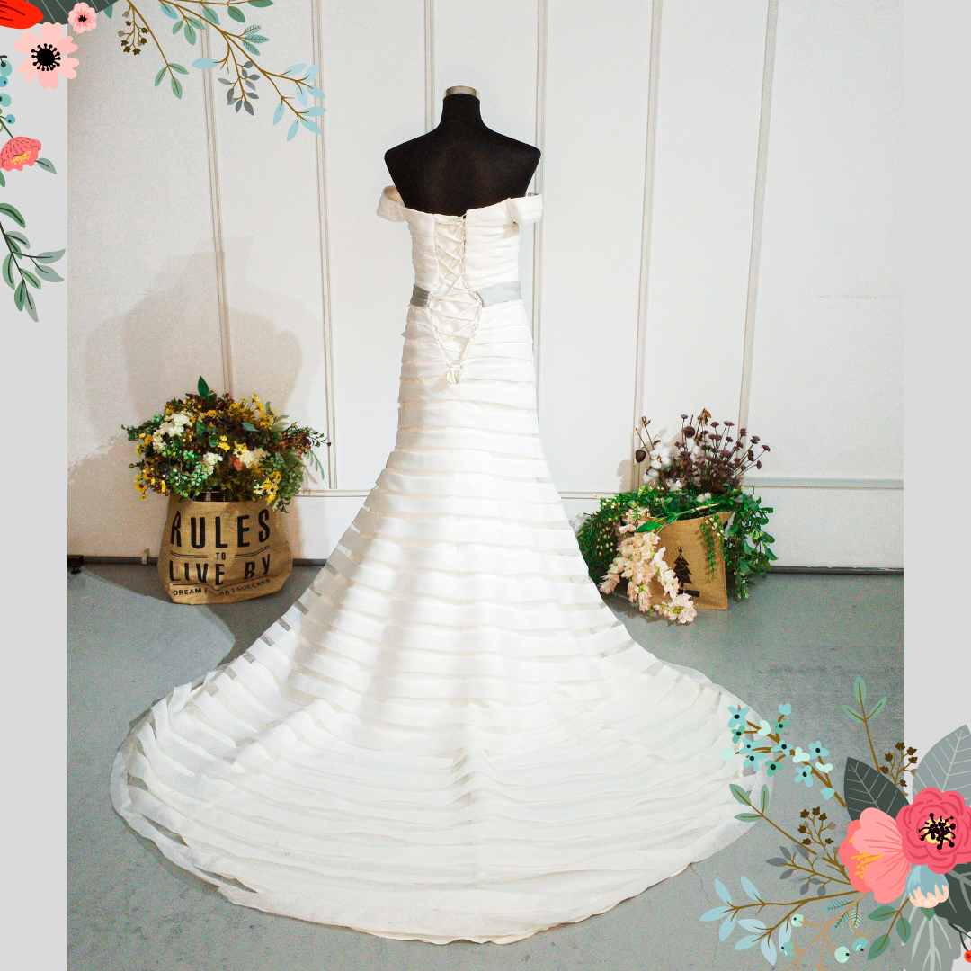 401W013 HH Off shoulder Tiered trumpet mermaid organza