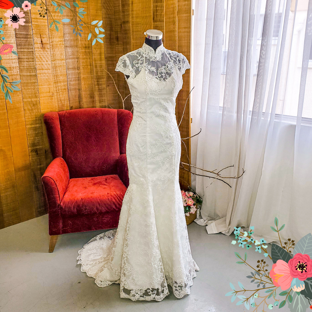 405W003 Mermaid Oriental Cheongsam White lace Wedding qi pao malaysia