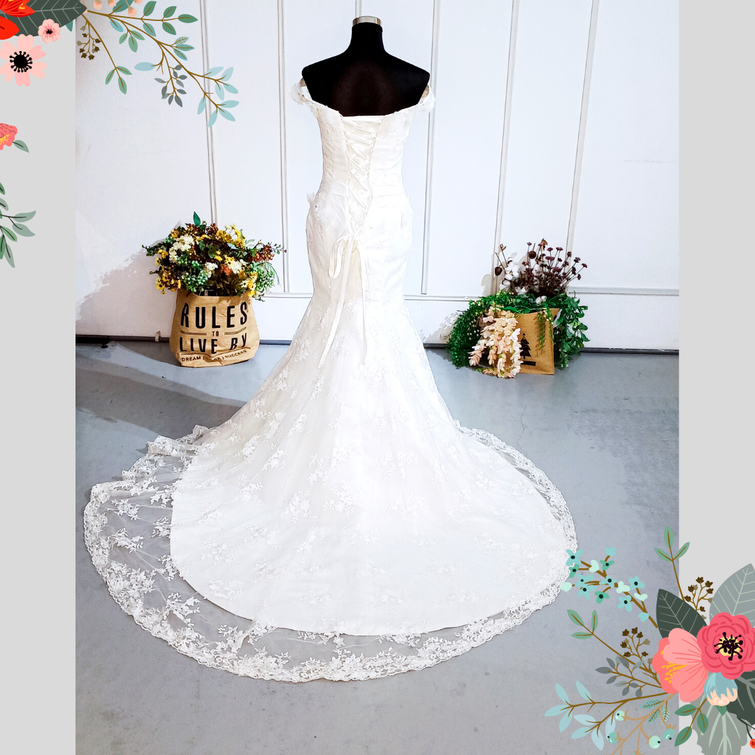 504W03 CS Off Shoulder Trumpet Floral mermaid wedding gown Malaysia rental