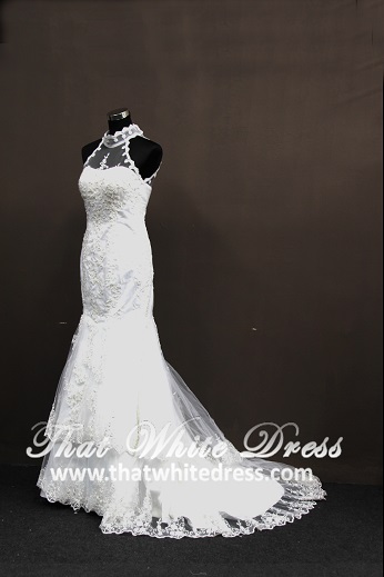 305W010 AL Trumpet Halter Lace Oriental collar Wedding Dress Designer Malaysia