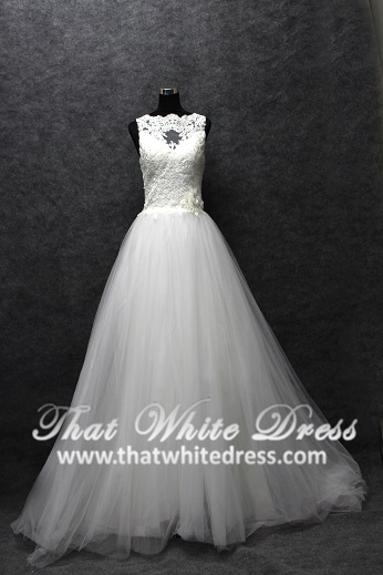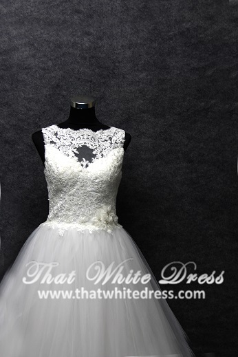 401W023 MR Illusioned Lace neckline Princess Wedding Dress Malaysia