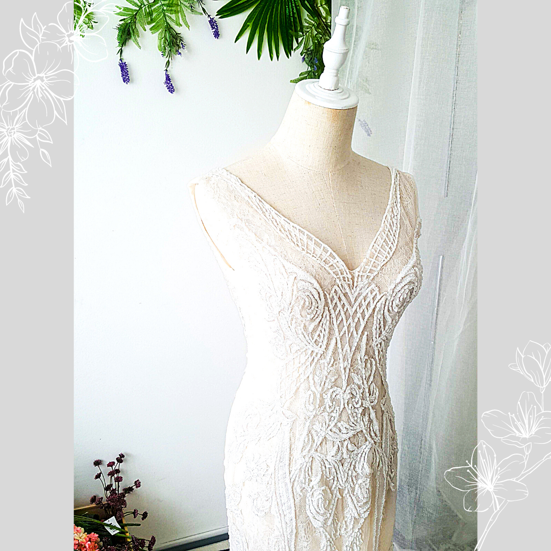 808LLW02 Sammie Deep V Spanish Guipure Deep V back trumpet mermaid bridal designer malaysia rental custom make