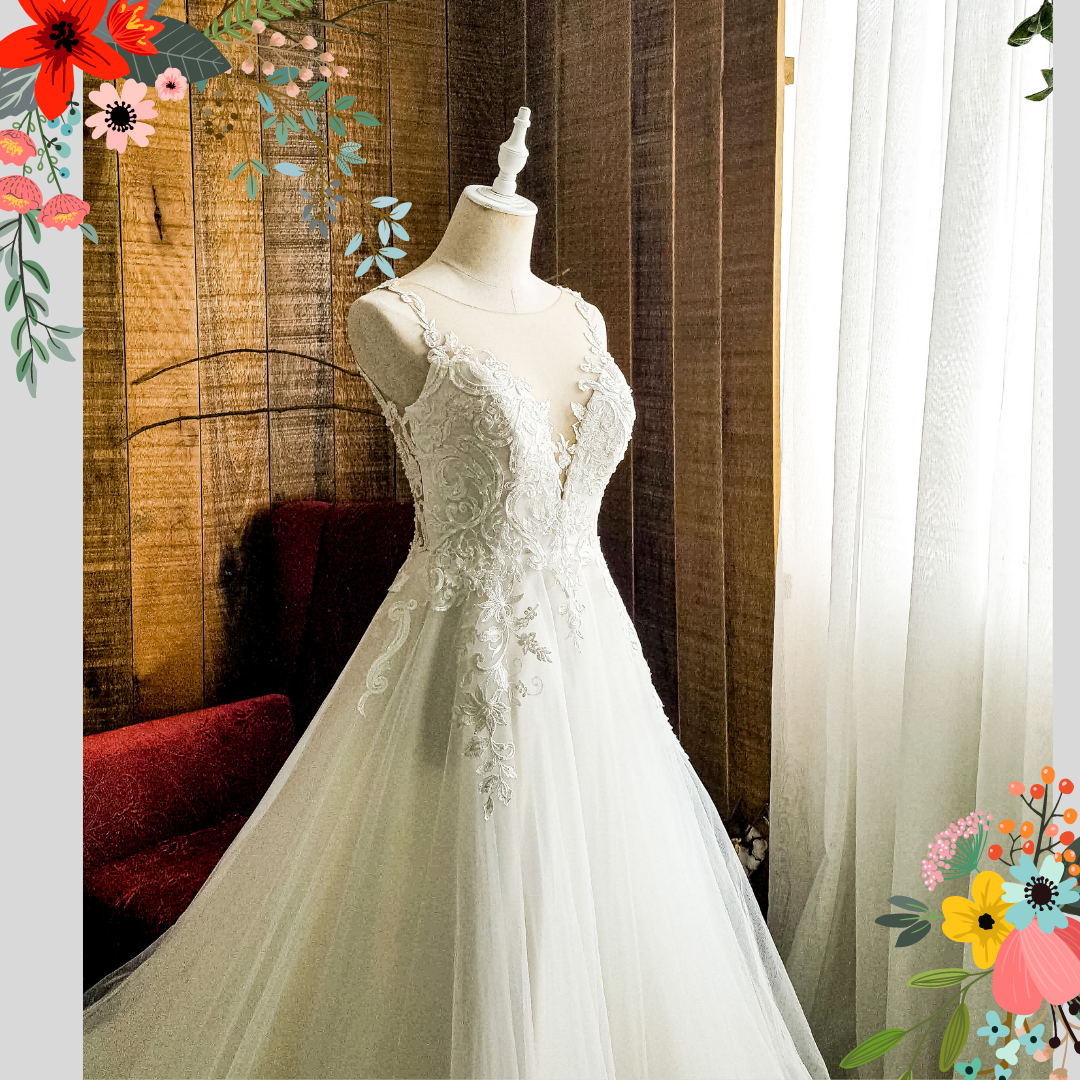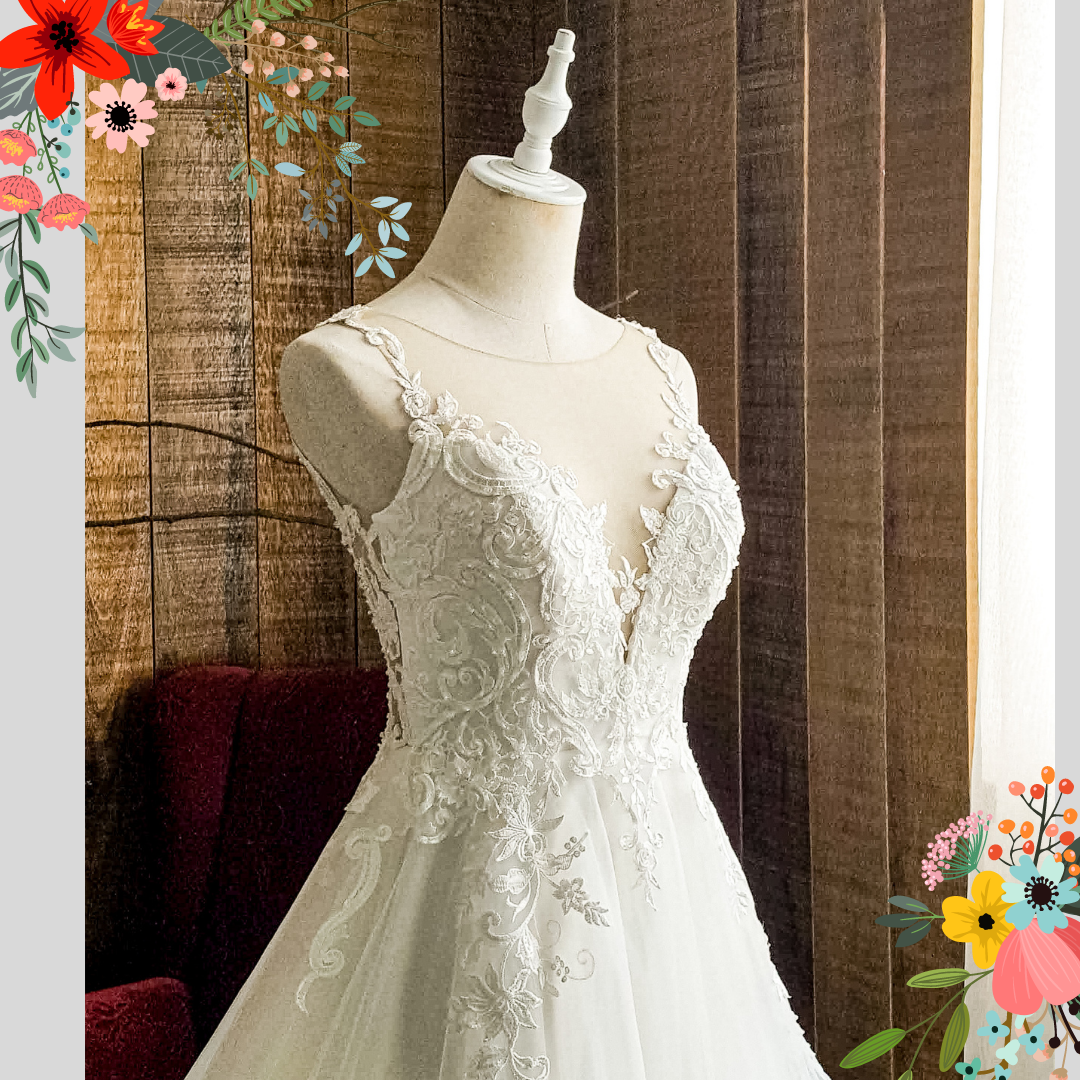 Gorgeous illusion neckline wedding dress in beautiful soft tulle.
