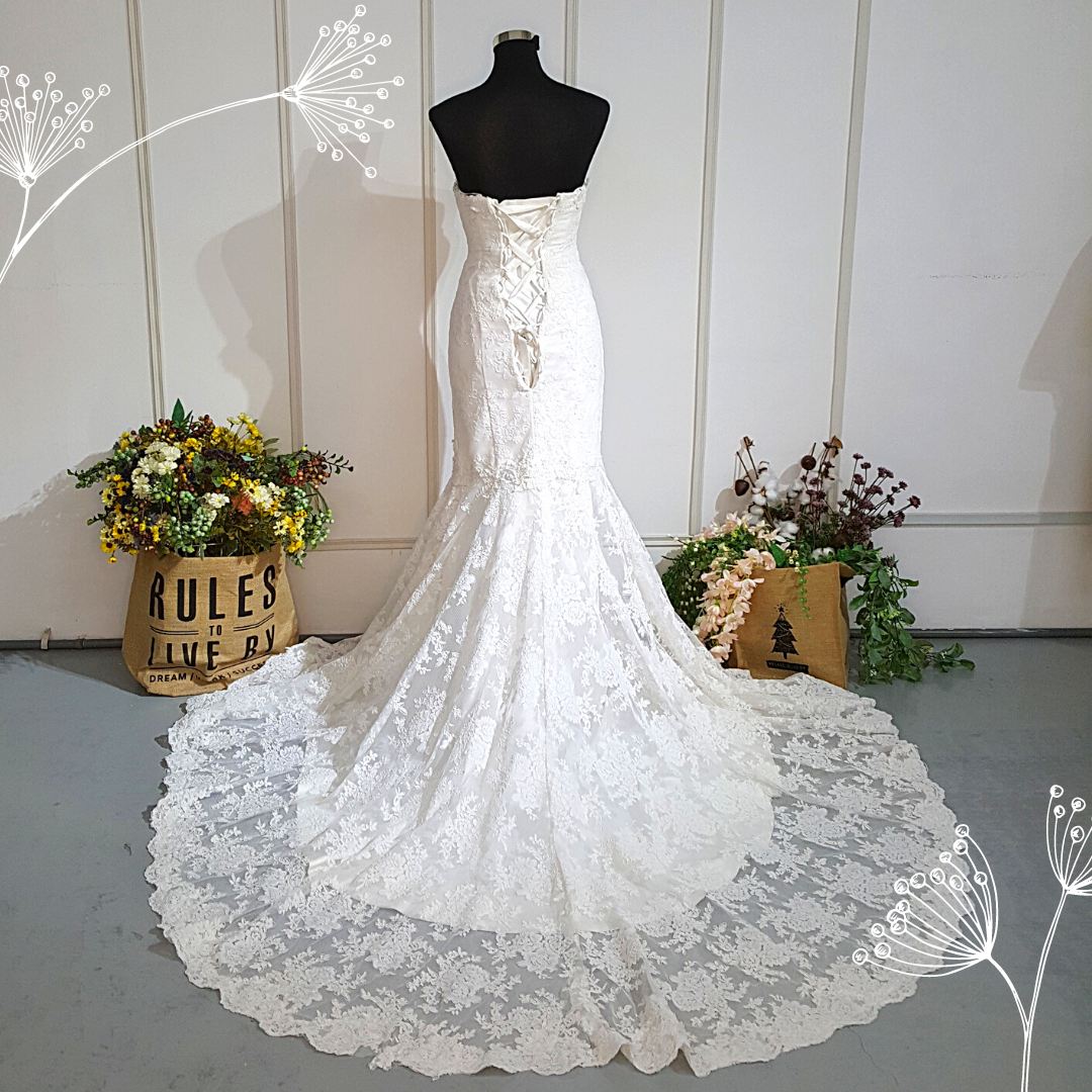 401W004 Sweet Heart Mermaid French Lace Vintage Tube single tier Wedding Dress with Long Train Malaysia