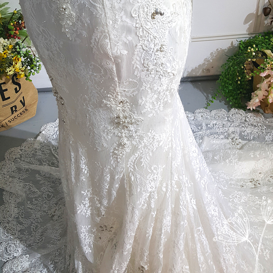 412W21 LL Low back Pearls V neck Strap Trumpet Mermaid Wedding Dress