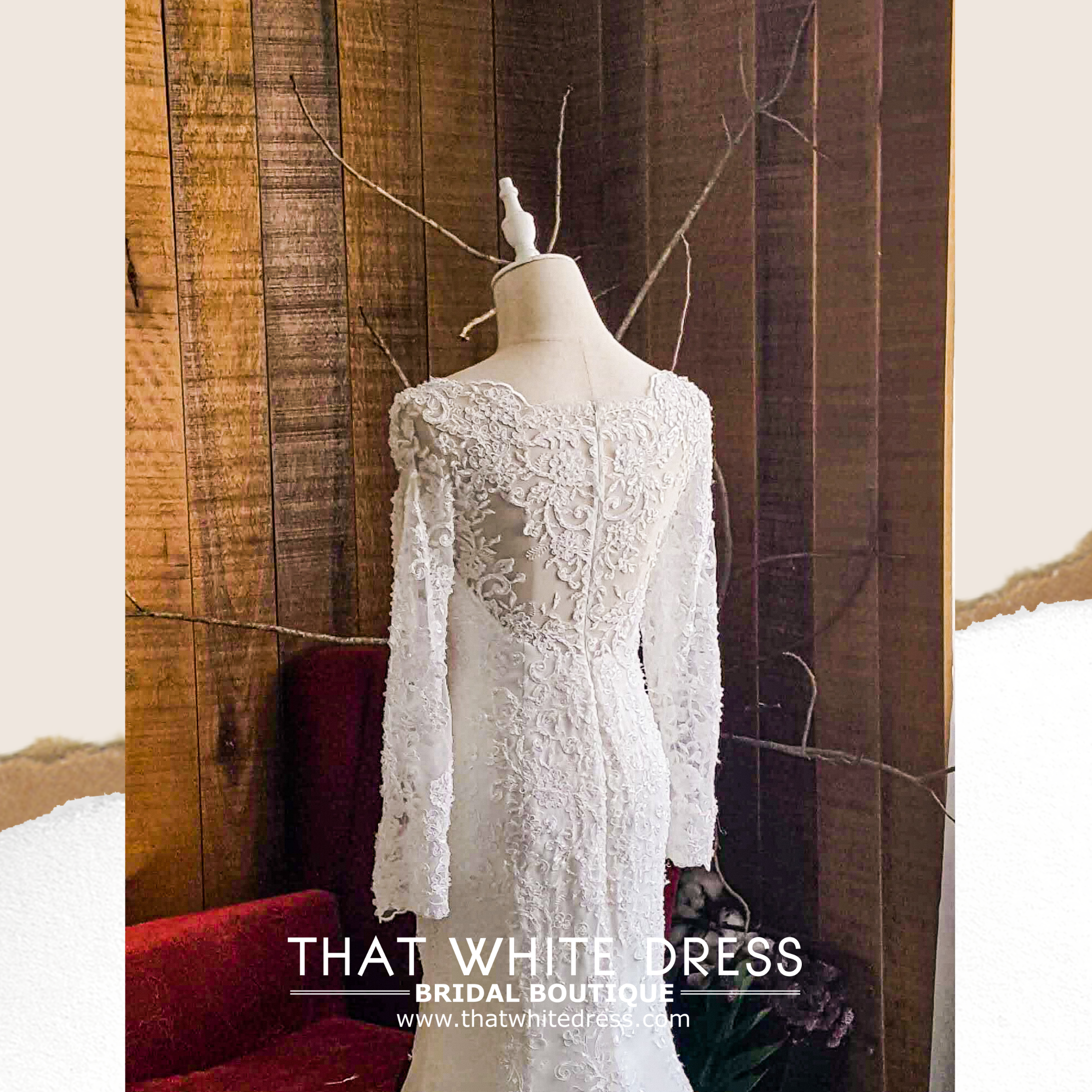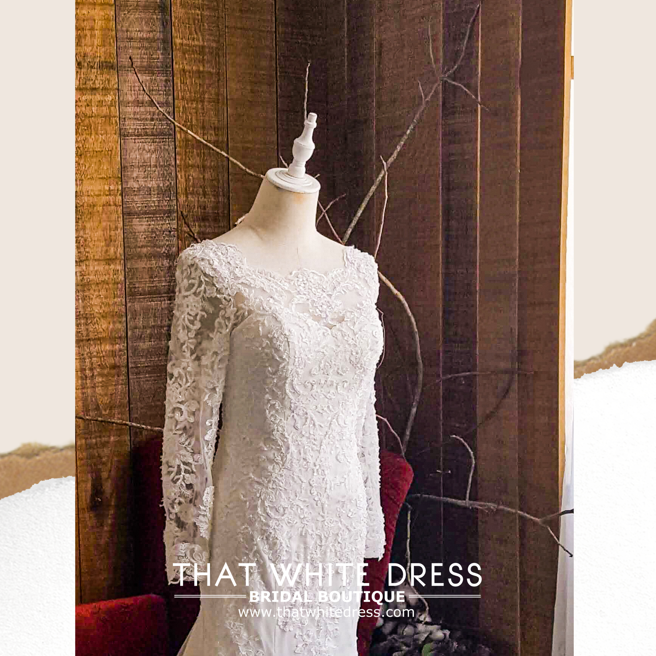 910LLW06 Carla Long sleeves boat neck trumpet Alencon  a Bride Wedding Gown Premium Designer Malaysia rental