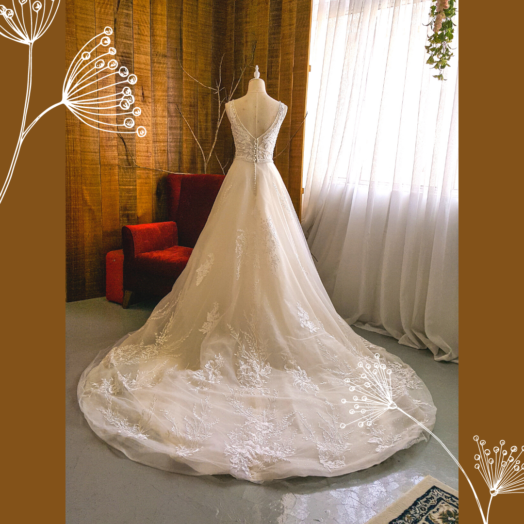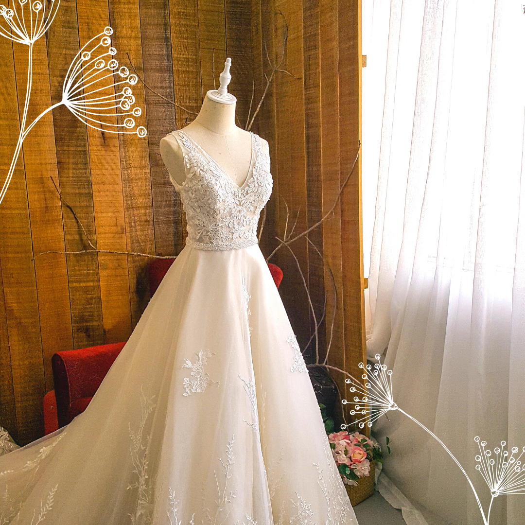 812BY02W05 Aryssa V neck illusion V back button A line a Bride Wedding Gown Premium Designer Malaysia rental