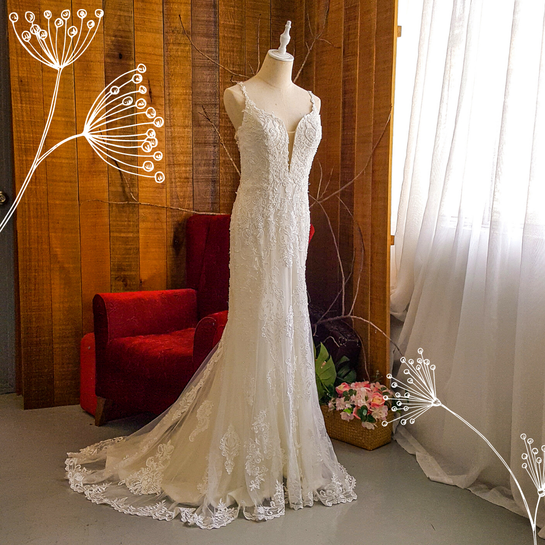 906LLW01 Chrisha Spaghetti Strap Baroque trumpet a mermaid Bride Wedding Gown Premium Designer Malaysia rental