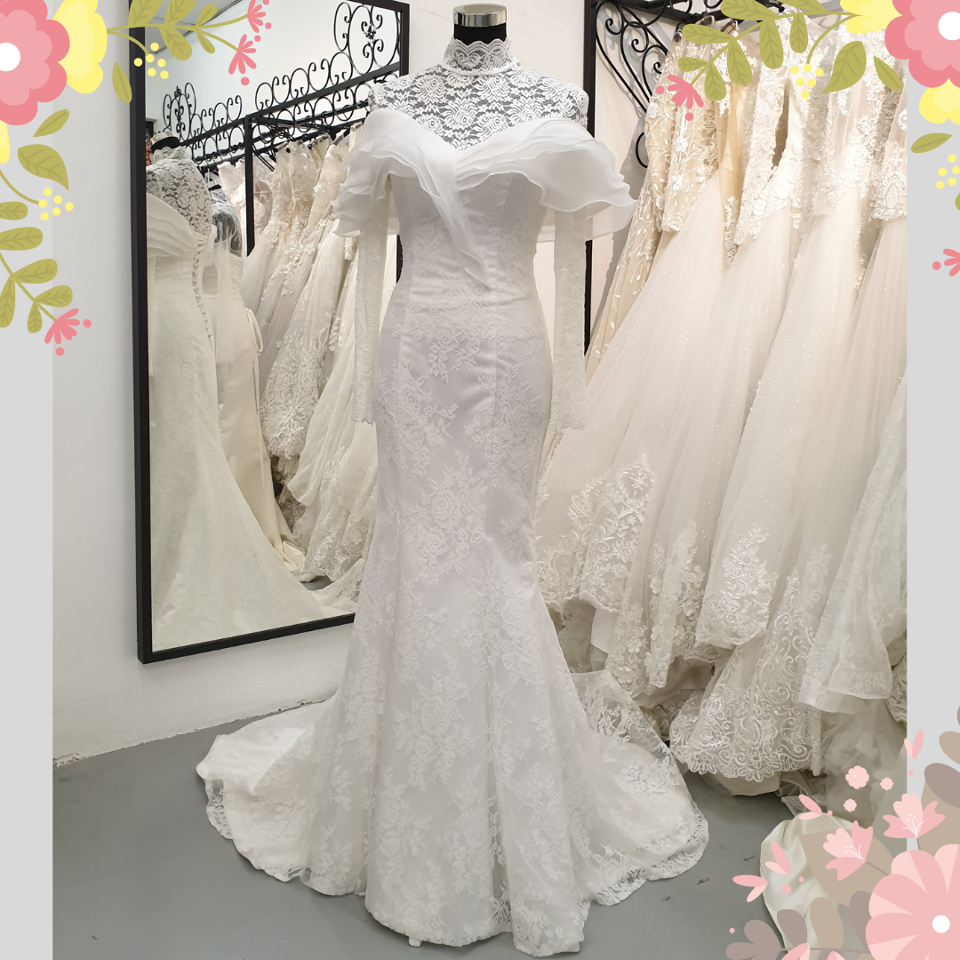 609DNW02 DN off shoulder Rose  Trumpet LS 2 Long Sleeves Wedding Dress Rental Kuala Lumpur, French Lace wedding Dress rental Malaysia,