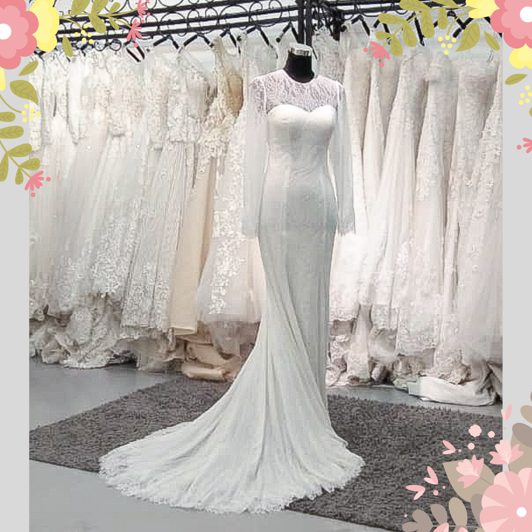 812BY03W01 Ellye Long Sleeves Chantilly lace trumpet zip 14 Long Sleeves Wedding Dress Rental Kuala Lumpur, French Lace wedding Dress rental Malaysia,