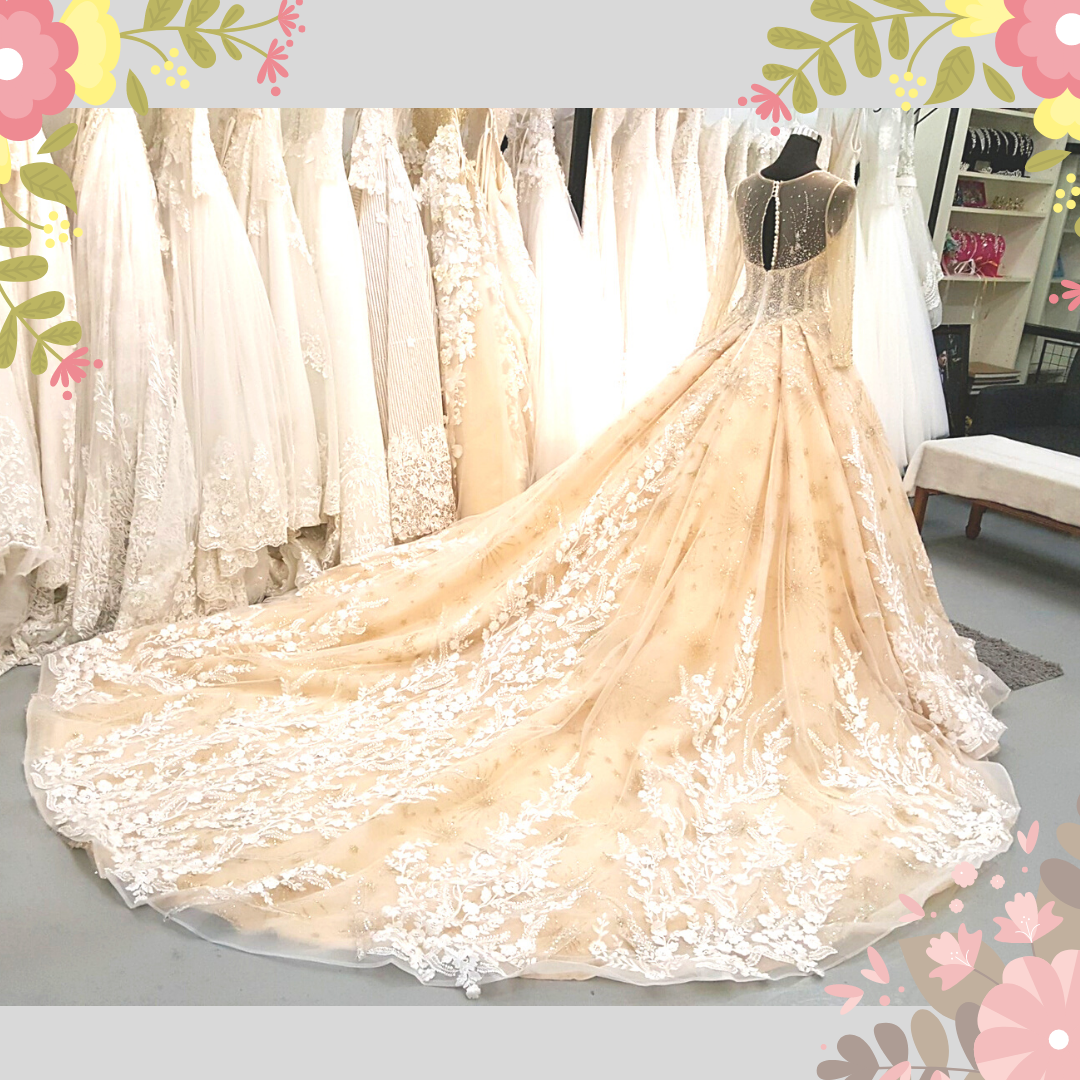 908XNW01 Jazmin Champagne LS Princess 4 Petite Bride Malaysia, Wedding Ballgown rental Malaysia, Bridal Dress Rental Malay Kuala Lumpur Rental