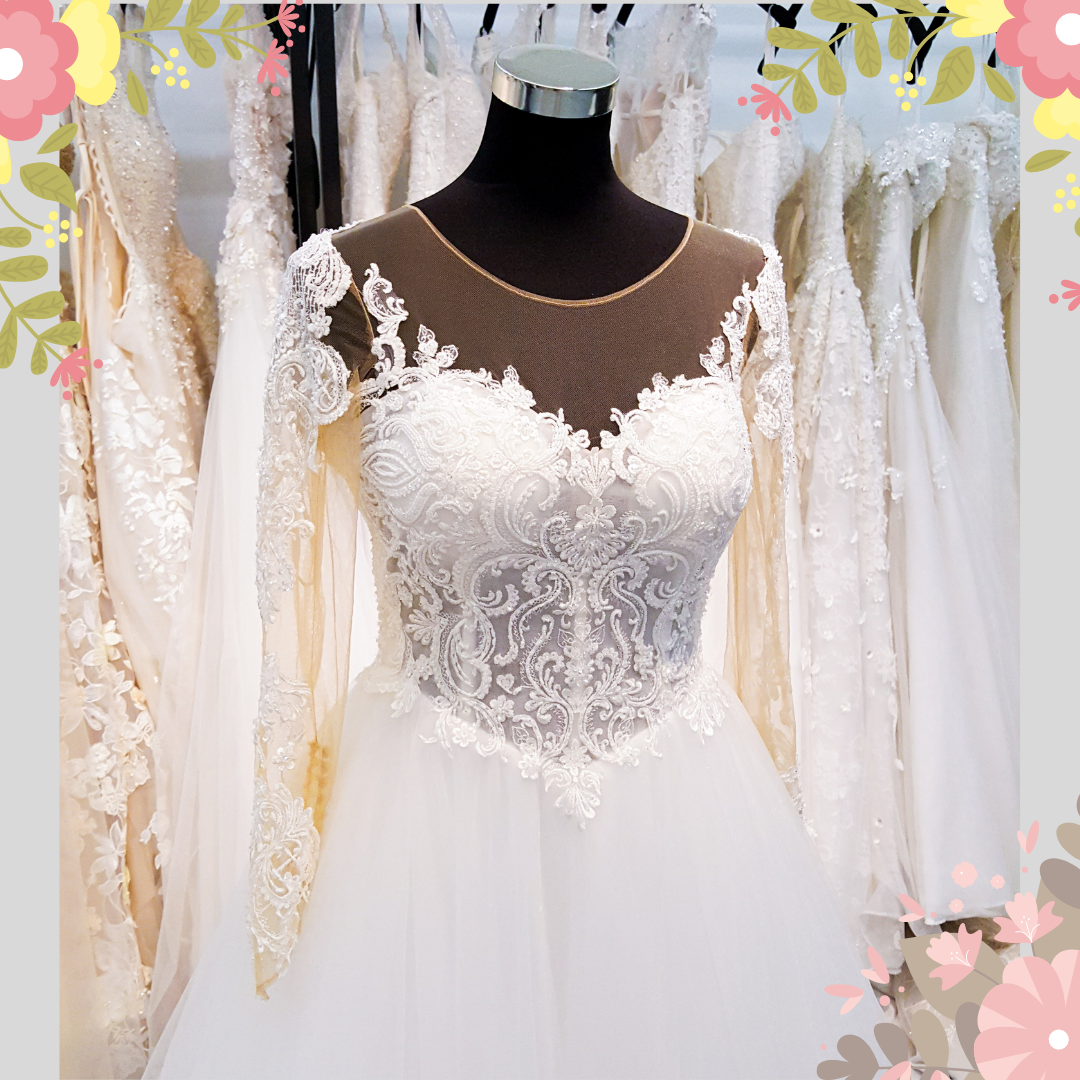 Gorgeous Long sleeves wedding dress in beautiful French embroidered Lace