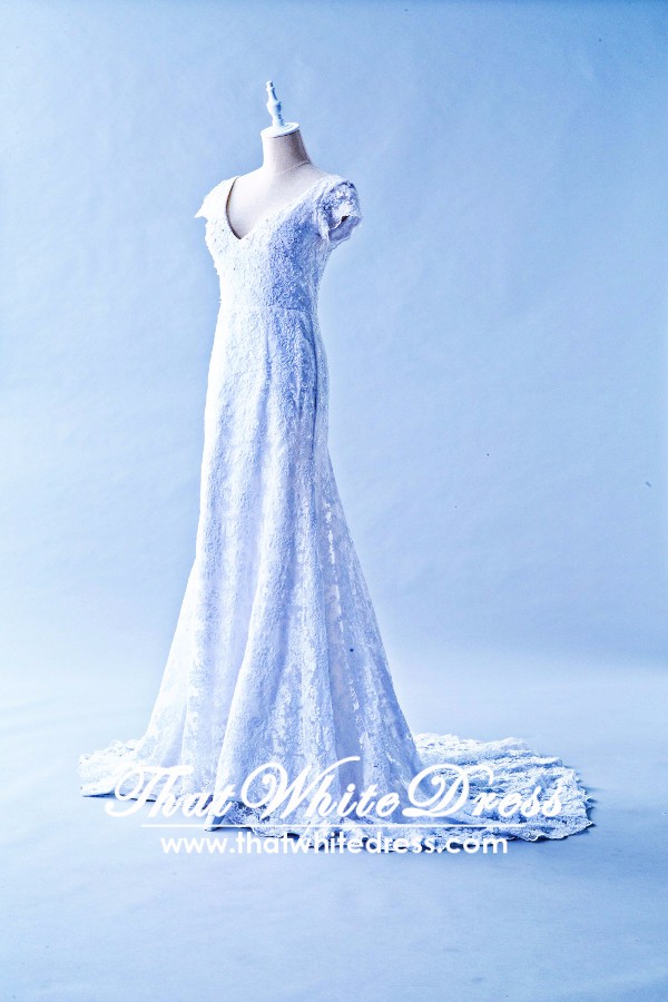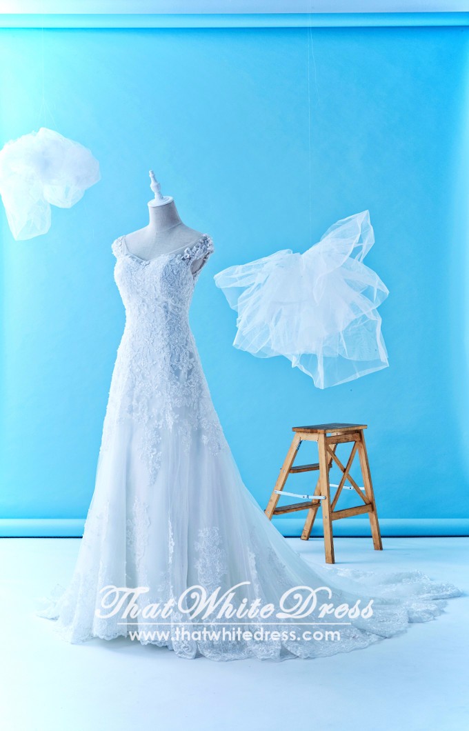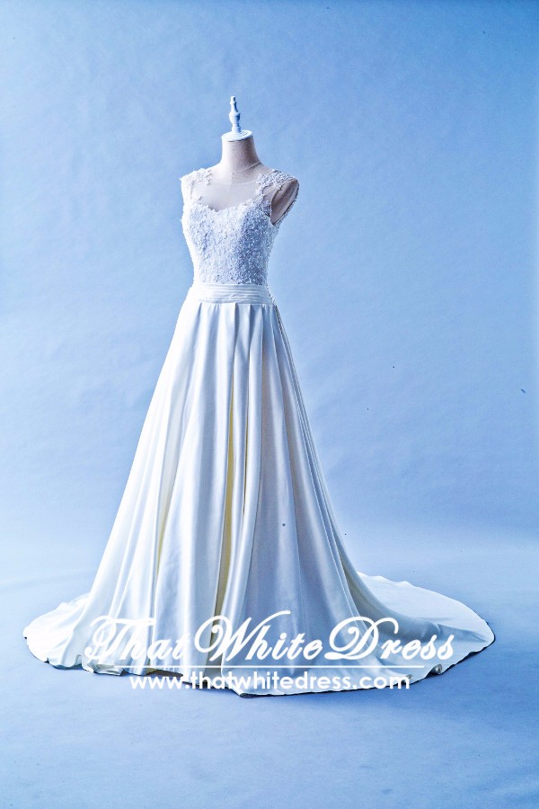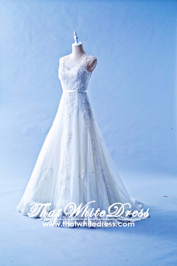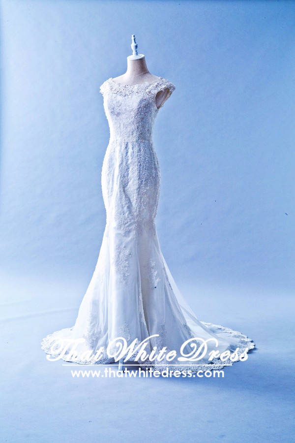 305W002 Aline Illusion Lace Cap Malaysia Wedding Dress Designer