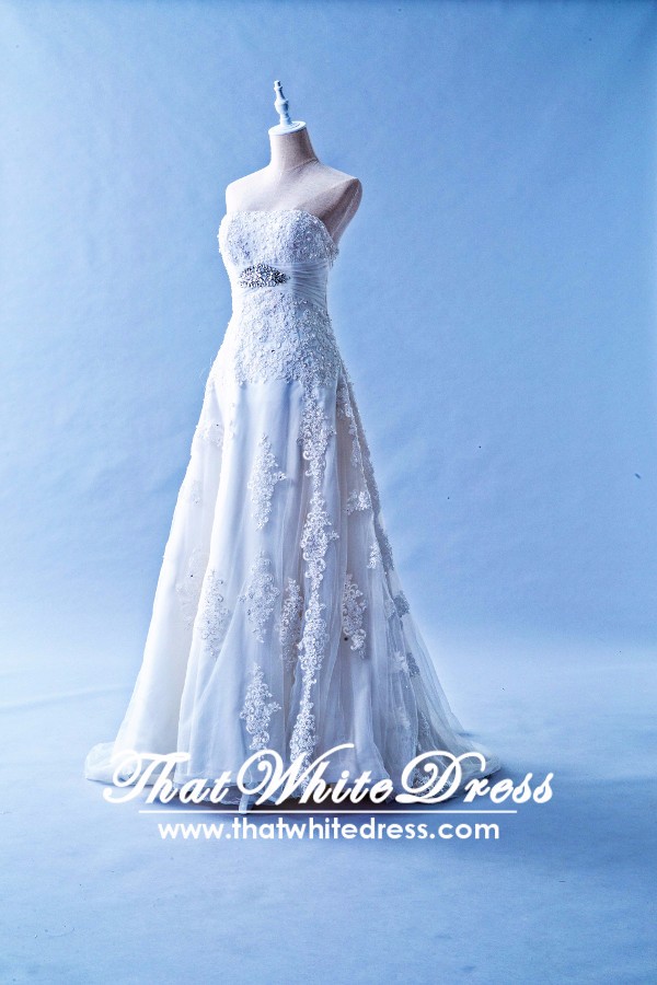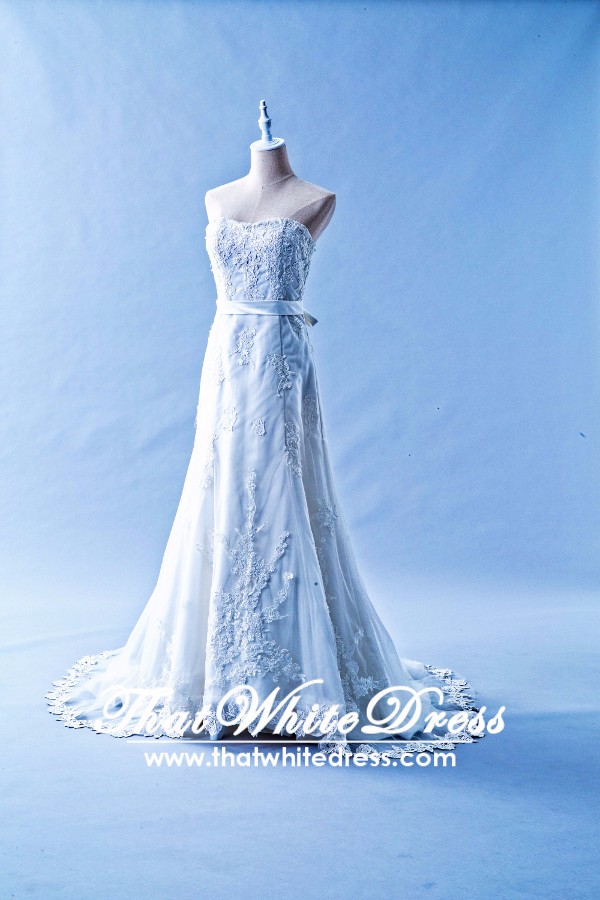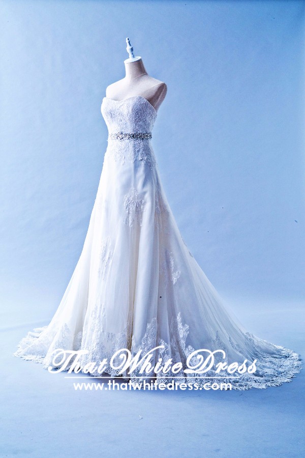 401W022 MR A Line Lace Long Waist Crystal Bust Wedding Dress Rental Kuala Lumpur