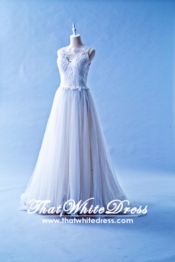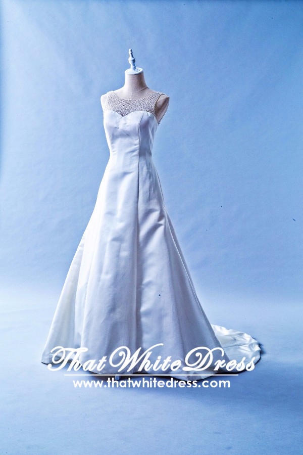 401W017 SSY Sleaveless A Line Illusioned Neckline Top Malaysia Wedding Dress Designer Rental Rosa Clara