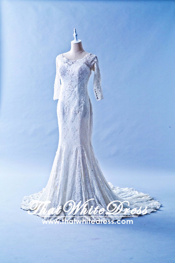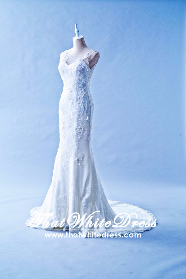401W012 HH Trumpet Oriental sheer lace back Wedding Dress Designer Malaysia