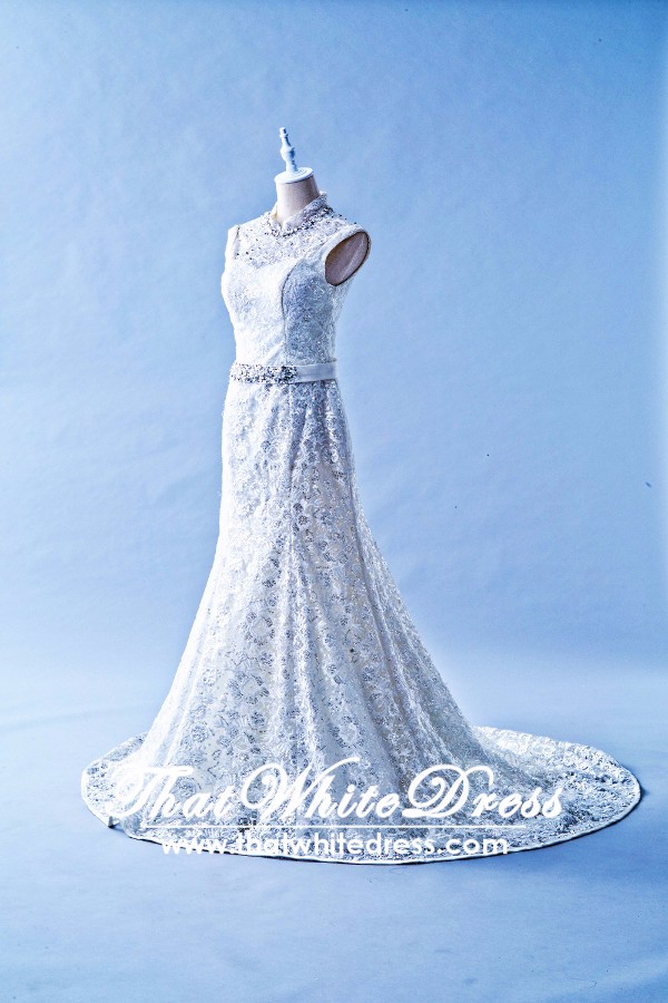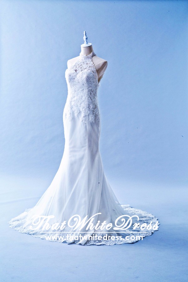 305W010 AL Trumpet Halter Lace Oriental collar Wedding Dress Designer Malaysia