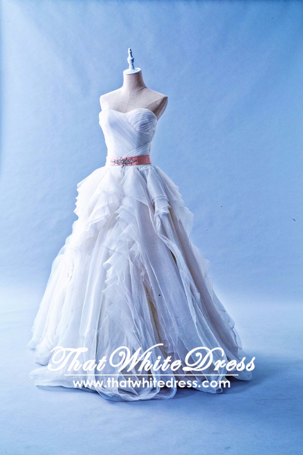 1502W05 XJ Organza Pleated Sweet Heart Princess Ruffle Peach Belt Allure Bride
