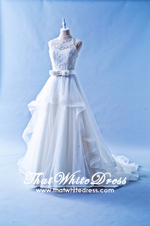 305W001 MR Halter Lace Aline Top Malaysia Wedding Dress Designer Rental
