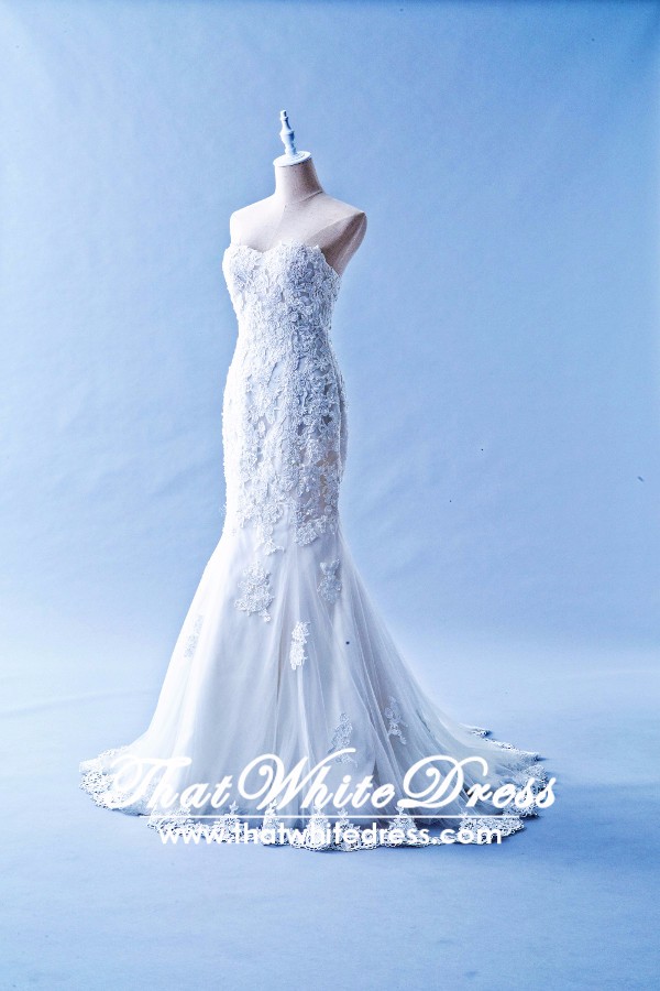 401W02 Trumpet Hand Embroidered Lace Heart shape Tube Wedding Dress Malaysia